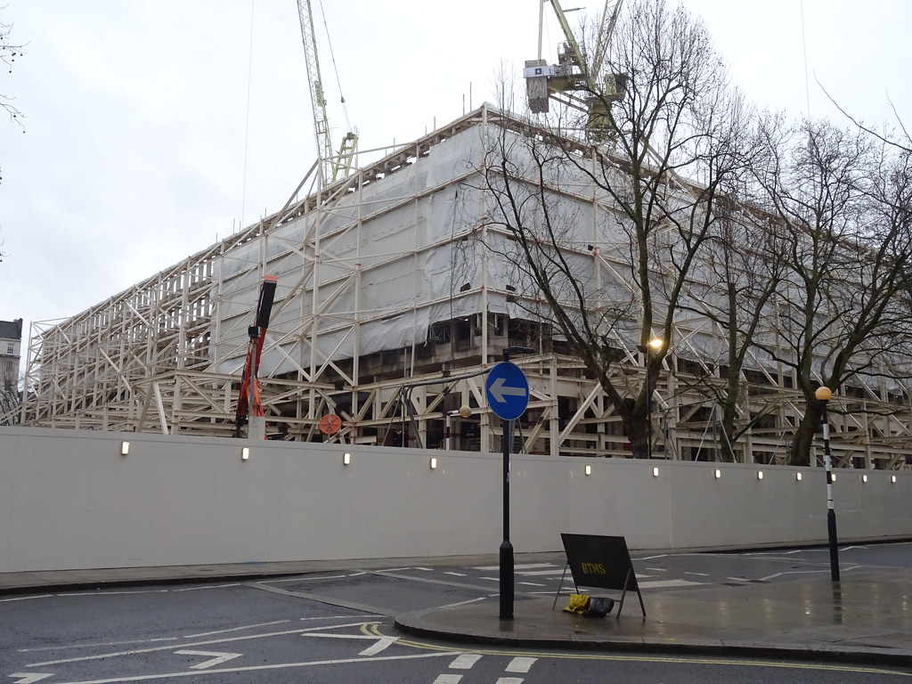 The existing strucutre was previously the United States Embassy, and little was known about its composition until the contract started. A method needed to be developed that would be flexible to deal with the known-unknowns. The proposed method utilised limited access piling rigs drilled to the bottom of the London clay layer, and large steel trusses that would need to be installed between the existing windows.
